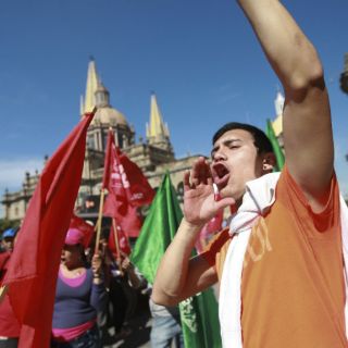 Este medio día marcharon sobre avenida 16 de Septiembre desde avenida La Paz hasta el recinto donde despacha el gobernador Aristóteles Sandoval, en el Centro Histórico, donde plantean quedarse indefinidamente hasta que les sean atendidas peticiones que desde hace un año entregaron al titular del Ejecutivo en un pliego petitorio.