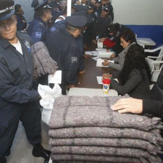 Durante una modesta celebración, los policías recibieron un cheque de una mensualidad, una despensa y una cobija por "su día".