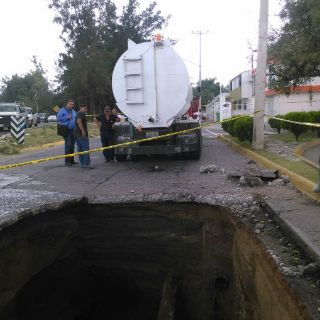 El paso de una pipa llena de agua provocó que se venciera el domo de la caverna que se encontraba debajo de la cinta asfáltica