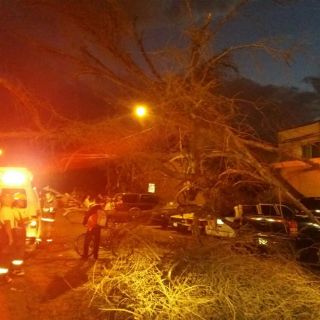 GUADALAJARA, JALISCO (14/MAR/2017).- Los bomberos de Guadalajara atendieron esta noche reportes de árboles caídos en la vía pública, pero uno de los más aparatosos se dio en la avenida Chamizal, donde un tronco de casi ocho metros de altura cayó a la calle y golpeó a un motociclista, quien sufrió varias lesiones.
