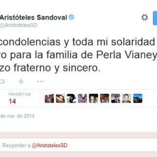 De lo anterior, el gobernador de Jalisco, Aristóteles Sandoval lamentó lo sucedido a través de su cuenta de Twitter, diciendo " @AristotelesSD: Mis condolencias y toda mi solidaridad y apoyo para la familia de Perla Vianey, un abrazo fraterno y sincero".