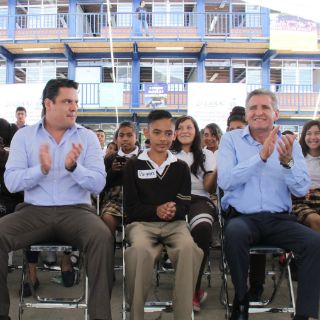 Aristóteles Sandoval Díaz a la inauguración de 21 aulas didácticas y entrega de mobiliario a dos planteles educativos del municipio alfarero.