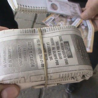Entre las pertenencias de los sujetos, les aseguraron una "paca", hecha con papel periódico.