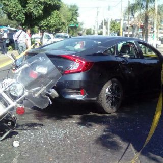 El oficial circulaba sobre el cruce referido a bordo de su motocicleta cuando de repente lo embistió el conductor de un auto Honda Civic gris, placas JMS-3199.
