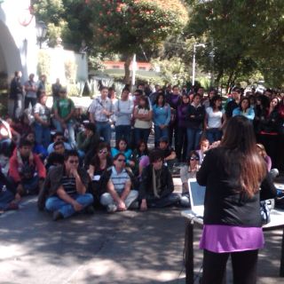 Frente a cerca de 250 estudiantes y profesores de las dos sedes del CULagos (Lagos de Moreno y San Juan de los Lagos), el líder estudiantil recordó que con la este lunes ya suman 39 movilizaciones que realiza la Universidad para exigir la entrega de recursos; 36 de éstas han sido en Casa Jalisco, dos más en Palacio de Gobierno y la megamarcha cuyo punto de concentración fue la Plaza de la Liberación.
