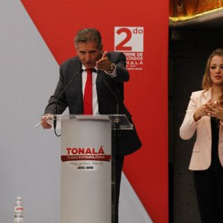 administración tonalteca, se han concretado 126 y 20 están en proceso, lo que representa un avance de 95% en dichos proyectos, destacó el alcalde Jorge Arana Arana durante su segundo informe de actividades presentado este medio día en la presidencia.