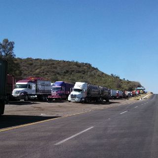 autopista Guadalajara-México, en la caseta de Ocotlán, donde productores de maíz mantienen bloqueado el paso. La fila de automotores que no tienen posibilidad de avance se prolonga alrededor de dos kilómetros, en el caso de quienes proceden de Guadalajara, mientras que quienes provienen de La Barca, se extiende 20 kilómetros.