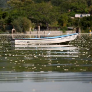 Bomberos apoyan en recolección de peces muertos en la laguna de Cajititlán