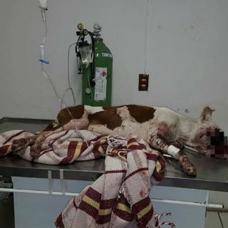 GUADALAJARA, JALISCO (20/DIC/2016).- Una perra pitbull se convirtió en víctima de un grupo de adolescentes que la golpeó y torturó con fuegos artificiales; aunque voluntarios la llevaron a recibir atención, los veterinarios debieron sacrificarla.