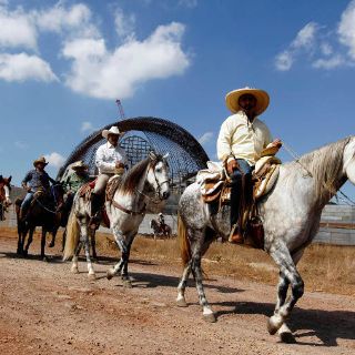 TLAQUEPAQUE, JALISCO (26/NOV/2011).- Por octava ocasión, tres mil católicos de distintos municipios de Jalisco y otros estados se unieron esta mañana a la Cabalgata por la fe, un contingente a caballo que partió del Lienzo Charro Santa María Tlajomulco y concluyó con una misa en la capilla contigua al Santuario de los Mártires, en Tlaquepaque.