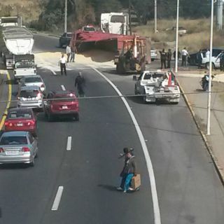 De acuerdo a información de Protección Civil de Tlajomulco, un camión tipo torton circulaba hacia el oriente por Pedro Parra Centeno para tomar la carretera cuando volcó a causa del peso en el entronque.