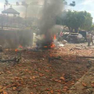 Alrededor de las 16:00 horas se registró la explosión en el centro del municipio, fuera del templo y del ayuntamiento.