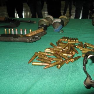 En total, las autoridades les aseguraron seis fusiles de asalto tipo AK-47, de los también conocidos como "cuernos de chivo", así como una escopeta del calibre .12, una pistola calibre .45, cuatro granadas de fragmentación, más de mil 700 cartuchos, dos chalecos antibalas, cinco camisolas camufladas y un radio portátil.