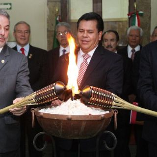 Durante casi dos horas, González Márquez se mantuvo atento a los discursos, poesías y reseñas históricas que los magistrados pronunciaron durante el evento conmemorativo.