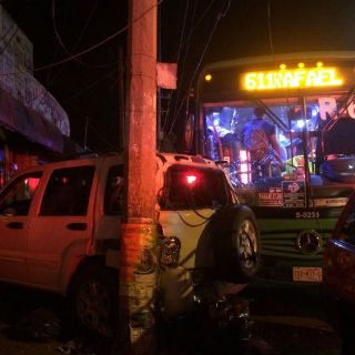 GUADALAJARA, JALISCO (20/FEB/2017).- Un chofer de la ruta 611 chocó su camión contra una camioneta estacionada, al parecer a causa de que sufrió un infarto a bordo de la unidad; el accidente ocurrió poco antes de las 21:00 horas de esta noche y, tras más de una hora de atención médica para salvarle la vida, el conductor falleció.