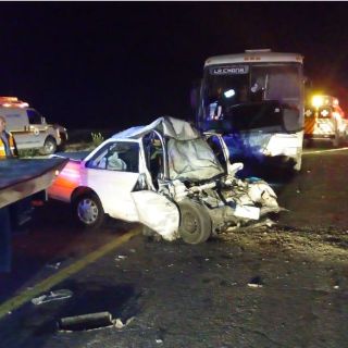 El impacto entre auto compacto y autobús se dio en el km 92 en carretera a Aguascalientes