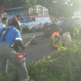 Los automovilistas recibieron el impacto después que el remolque derribara un árbol.