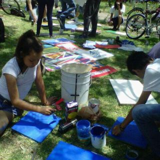 GUADALAJARA , JALISCO (12/MAY/2013) - Por convocatoria de la Red Universitaria de Movilidad, recientemente creada, unos 50 jóvenes, algunos niños y adultos elaboraron señalética en el Parque Revolución, ubicado al cruce de las avenidas Juárez y Federalismo.
