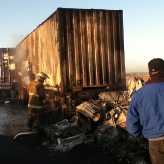 Cierran autopista por choque e incendio de tráilers