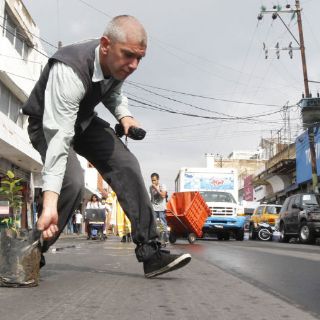 GUADALAJARA,JALISCO (30/JUL/2011).- En un ejercicio de recuperación virtual del espacio peatonal, integrantes de Ciudad para Todos tomaron un carril vehicular a lo largo de tres cuadras de la calle Obregón, en la conflictiva zona comercial, de modo que los caminantes tuvieron más espacio para sus desplazamientos, además de incrementar su seguridad al contar con mayor amplitud y sin mezclarse con los automotores.
