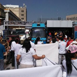Comerciantes bloquean un carril del Macrobús