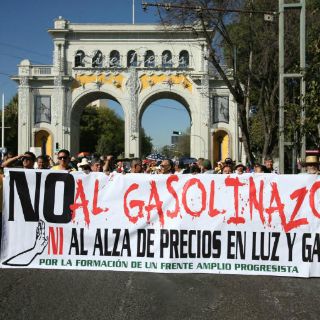 GUADALAJARA, JALISCO (07/ENE/2017).- La marcha en contra del incremento al precio de los combustibles en México comenzó esta mañana alrededor de las 10:20 horas, tomando como punto de partida la Glorieta Minerva.