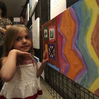 GUADALAJARA, JALISCO (19/MAY/2011).- Alumnos y padres de familia del colegio American School y del Centro Psicoeducativo Freire, celebran el éxito del proyecto Pintores de una Historia, el cual consistió en una subasta de pinturas creadas por niños de ambas instituciones con el objeto de destinar lo recaudado al apoyo de infantes y jóvenes con discapacidad.