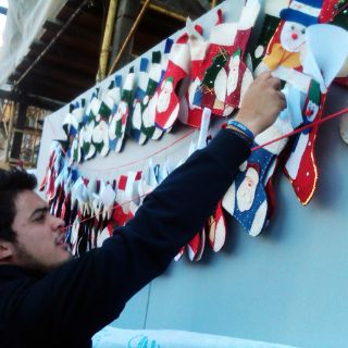 Las cartas navideñas dirigidas a “burrilio” fueron depositadas en calcetines navideños tendidos a lo largo de las mamparas que cubren las obras de mantenimiento que se realizan en el recinto sede del Poder Ejecutivo, en el Centro Histórico de la ciudad.