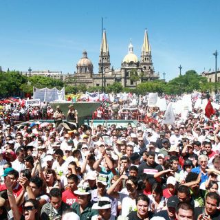 UdeG) para contabilizar a los asistentes de la megamarcha congregados hoy en la Plaza Liberación varían.