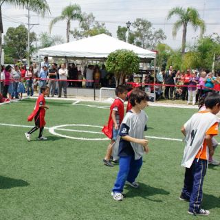 GUADALAJARA, JALISCO (02/AGO/2012).- Hoy se hizo entrega a la sociedad de un espacio público rehabilitado por el Ayuntamiento de Guadalajara en el fraccionamiento Residencial de la Barranca, en las vialidades Periférico Oriente y Barranca de Huentitán, donde la autoridad municipal habilitó una cancha de futbol y dotó de otros equipamientos con fines recreativos.