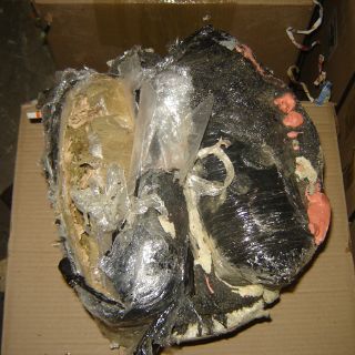 En total fueron 67 paquetes hechos con yeso, espuma cristalizada y papel calca; el peso total fue de 36 kilos 890 gramos.