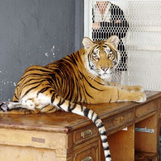 GUADALAJARA, JALISCO (04/AGO/2012).- Después de ser decomisado del Parque Rehilete Alcalde el 11 de mayo pasado, Albert, un cachorro de tigre de bengala vive entre perros en el Centro Antirrábico de Guadalajara, a la espera de una resolución de las autoridades para hallarle un nuevo hogar.