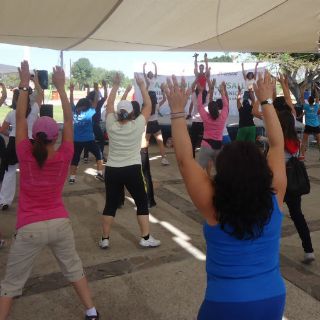 GUADALAJARA, JALISCO (07/ABR/2013).- Al ritmo de salsa, merengue y cumbia, instructores de activación física del Consejo Municipal del Deporte (Comude) Zapopan movilizaron a decenas de personas en la explanada del Parque Metropolitano que se ubica en el municipio zapopano.