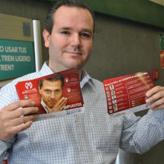 En el cruce de las avenidas Federalismo y Juárez se entrevistó con transeúntes y usuarios del tren ligero a los que entregó volantes que exponían los argumentos para manifestarse en contra de la alza a la tarifa del transporte público y de diversos impuestos.