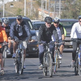 Junto con alcaldes de Tlajomulco y Tlaquepaque el gobernador hace un recorrido en bicicleta