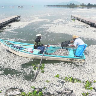 “Este año murió mucho, muchísimo, y ahora ya está oliendo muy mal y la gente no está viniendo. Desde hace 15 días la gente ha dejado de venir”, relata, mientras decenas de compañeros suyos, pescadores y voluntarios ayudan a sacar los peces del agua con redes, cajas, coladeras, palas, costales y lo que pueden.