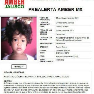 Nancy, de un año y siete meses de edad, fue robada a su madre el 22 de junio en Lázaro Cárdenas y 8 de Julio en Guadalajara.