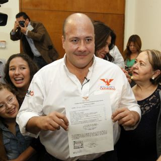 Al prerregistro se hizo acompañar de su familia pero también de cientos de simpatizantes, quienes aguardaron en las afueras de MC e incluso cerraron avenida La Paz desde la calle Colonias hasta Chapultepec para vitorearlo en su no oficial inicio de campaña.