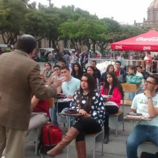 GUADALAJARA, JALISCO (23/NOV/2014).- Alumnos de distintos centros universitarios de la Universidad de Guadalajara (UdeG) cambiaron las aulas por espacios públicos para visibilizar que toman clases bajo protesta, esto por la situación de violencia e injusticia que impera en el país y que ha afectado a jóvenes estudiantes, como a los 43 desaparecidos de la Escuela Normal de Ayotzinapa.