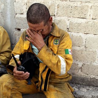 Omar Cervantes, guardabosques de Zapopan, mantiene entreabiertos los ojos y habla como si estuviera utilizando el último oxígeno de su cuerpo. Tiene cuatro días sin dormir y llegó al área de picnic, por el ingreso de Mariano Otero, para tomar alimentos y regresarse a Pinar de la Venta. "Ya lo habíamos controlado, pero una brasa voló y se reavivó el fuego. Ya vamos de regreso, agarramos suero, agua, atún, pero mejor que nos los lleven allá, para no tener que volver hasta acá".