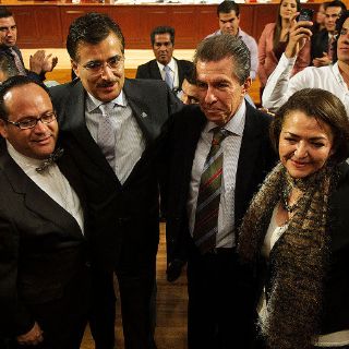 Sin embargo, una vez que el rector Marco Antonio Cortés Guardado hizo la declaratoria oficial del ganador, los cuatro contendientes se abrazaron colectivamente en signo de conformidad y apoyo al nuevo dirigente de la casa de estudios, mientras los consejeros, alrededor, aplaudían y acompañaban la cálida escena vitoreando a la UdeG.