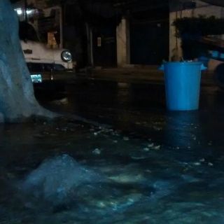 El agua brota desde la banqueta en la calle Naranjo, casi a su cruce con Pino. De acuerdo con vecinos, la fuga comenzó poco después de las 05.00 horas. Desde entonces se ha estado desperdiciando el líquido.