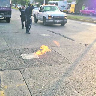 GUADALAJARA, JALISCO (17/OCT/2013).- Una llama lo desató. Poco antes de las ocho de la mañana, un reporte telefónico alertó a las autoridades, pues daba cuenta de una flama que salía del subsuelo; de una caja subterránea de drenaje, cuya evidencia fotográfica viajó veloz por las redes sociales.