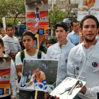 El contingente de allegados a Jaime cargaba consigo pancartas del gimnasta en sus distintas competencias nacionales e internacionales, todas exigiendo justicia. Además, la delegación de atletas entregó al Gobierno del Estado la medalla de oro que la acredita como campeona nacional en la disciplina, pues aseguran que no sienten orgullo de portarla dada la situación con Jaime.