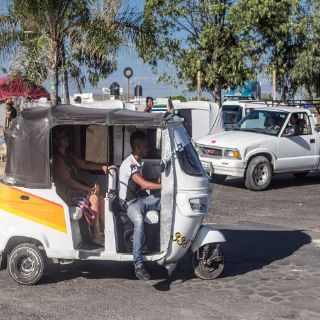 El dueño de un establecimiento de venta de motonetas rickshaw en Tlajomulco, entre Santa Fe y Chulavista, señala que desde hace ocho años los comercializa en la ciudad. Actualmente ofrece la marca india Bajaj, de mejor calidad y la que más refacciones tiene. Cada mototaxi tiene un costo de 64 mil 900 pesos.