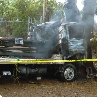 Un vehículo de carga impacta contra un árbol, posteriormente, la cabina del conductor comienza a incendiarse