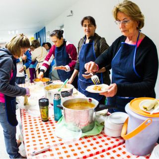 Los voluntarios llevan alimentos a los familiares de pacientes que están hospitalizados