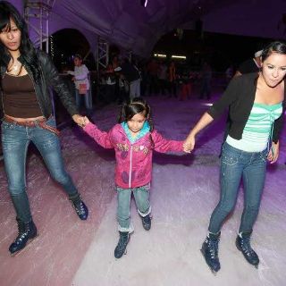 ZAPOPAN, JALISCO (12/DIC/2012).- Con las sonrisas en su máxima expresión, los zapopanos dieron anoche los primeros deslices en la pista de hielo instalada en la Plaza Juan Pablo II del Centro Histórico que permanecerá abierta hasta el 11 de enero de 2013 de manera gratuita.