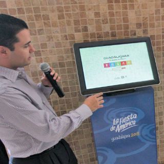 GUADALAJARA, JALISCO (13/JUL/2011).- Con la puesta del módulo en el hotel Fiesta Americana de la avenida Américas, inició el programa de la instalación de unas pantallas que darán información sobre diversos puntos para los turistas que vengan a esta ciudad a propósito de la coyuntura de los