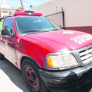 Cerca del área donde se deposita la basura del mercado, se observaron estacionadas una camioneta Ford-150 y una Ford-350 de la corporación, ésta última con una adaptación para un tanque con agua, a manera de motobomba.